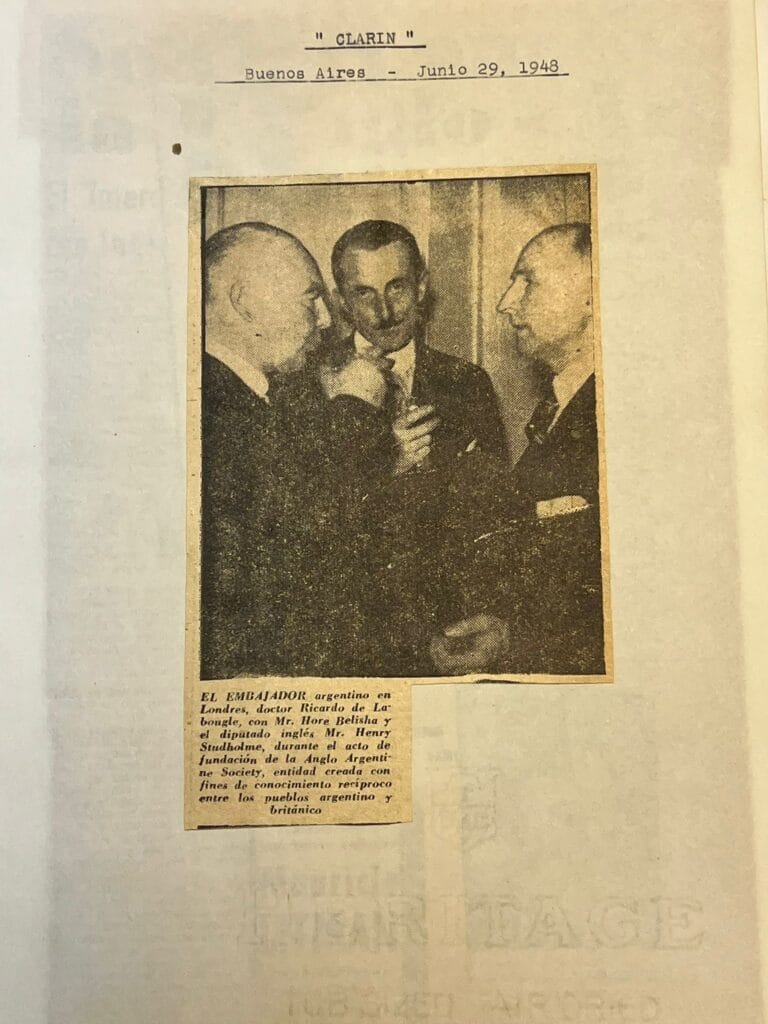 Cumple 77 años la Anglo Argentine Society fundada en Londres el 21 de junio de 1948 en la gestión de Ricardo Labougle, embajador argentino ante el Reino Unido entre 1946 y 1950.