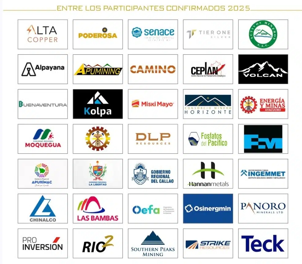 Minera Las Bambas, Anglo American Perú, Compañía de Minas Buenaventura S.A., Hudbay Perú S.A.C., Newmont Corporation Perú, Minera Chinalco Perú, Nexa Resources Perú, Pan American Silver Perú, Marcobre, Volcan Compañía Minera, son algunas de las compañías mineras que se darán cita en la capital peruana.
