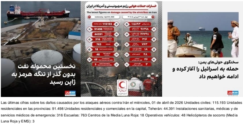Las últimas cifras sobre daños causados por los ataques aéreos contra Irán según datos al miércoles, 01 de abril de 2026 registran: